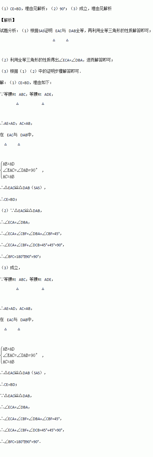 以点A为顶点作等腰Rt△ABC,等腰Rt△ADE,其中∠BAC=∠DAE=90°,如图1所示放置,使得一直角边重合,连接BD、CE.