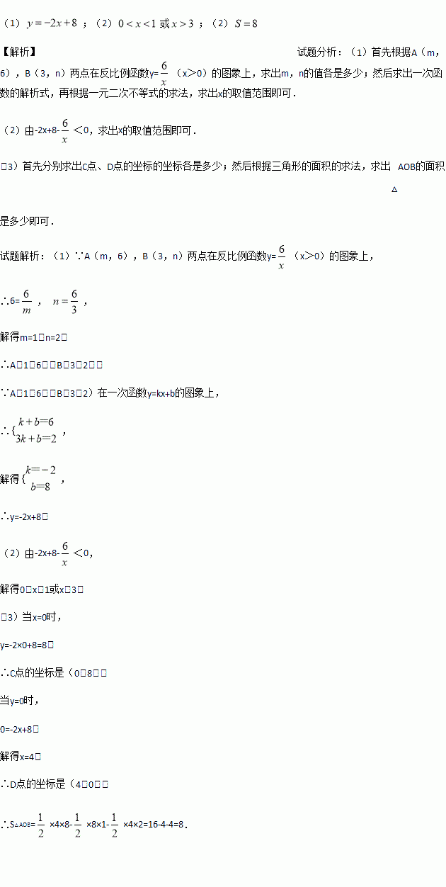 (x>0)的图象交于A(m,6),B(3,n)两点.