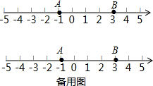 已知数轴上点A、B表示的数分别为-1、3、p为数轴上一动点,其表示的数为x.