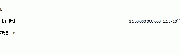 A. 0.156×1012元 B. 1.56×1012元 C. 1.56×1011元 D. 15.6×1011元