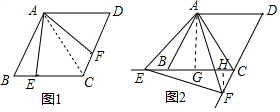 解答 (1)证明:连接AC,如图1中,∵∠BAC=∠EAF=60°,