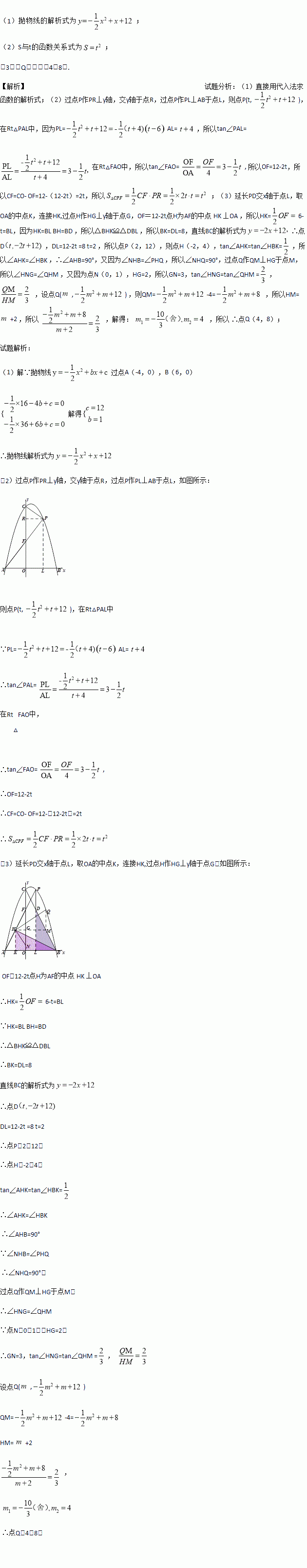 (3)如图3,在(2)的条件下,连接BC,过点P作PD//y轴变BC于点D,点H为AF中点,且点N(0,1),连接NH、BH,将∠NHB绕点H逆时针旋转,使角的一条边H落在射线HF上,另一条边HN变抛物线于点Q,当BH=BD时,求点Q坐标.