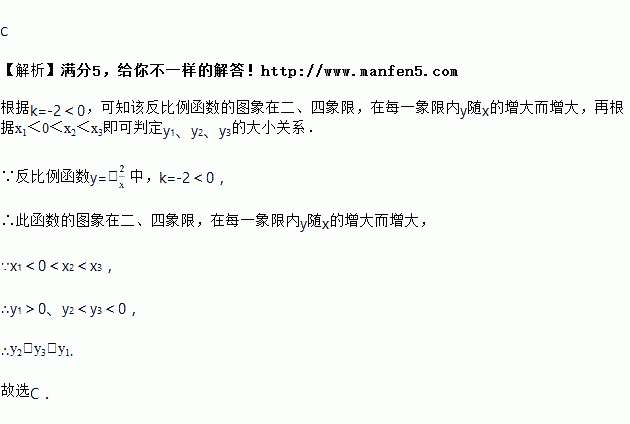 图象上有三个点A(x1,y1)、B(x2,y2)、C(x3,y3),若x1<0<x2<x3,则下列结论正确的是( )