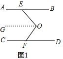 分析:(1)过O作OG∥AB,由平行线的性质可得到∠EOF=∠BEO+∠DFO;
