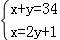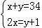 某单位组织34人分别到井冈山和瑞金进行革命传统教育,到井冈山的人数是到瑞金的人数的2倍多1人,求到两地的人数各是多少?设到井冈山的人数为x人,到瑞金的人数为y人.下面所列的方程组正确的是( )