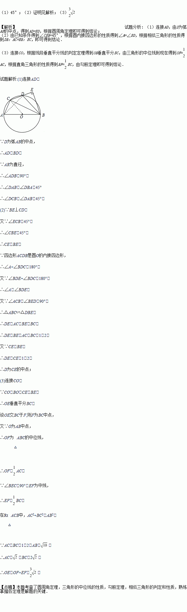 (2)求证:D为CE的中点;