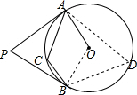 分析 连结OA、OB,∠ADB为弧AB所对的圆周角,如图,根据切线的性质得∠OAP=∠OBP=90°,再利用四边形内角和可计算出∠AOB=110°,接着根据圆周角定理得到∠D=$\frac{1}{2}$∠AOB=55°,然后根据圆内接四边形的性质计算∠ACB的度数.