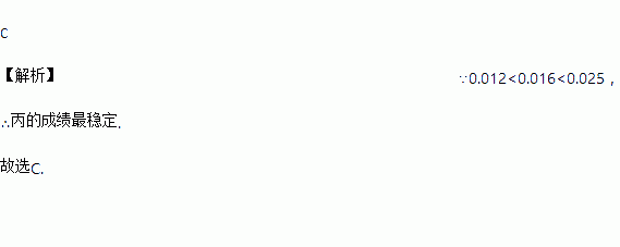 甲、乙、丙三人进行射击测试,每人10次射击成绩的平均数都为8.8环,方差分别为s甲2=0.016,s乙2=0.025,s丙2=0.012,则三人中成绩最稳定的选手是( )
