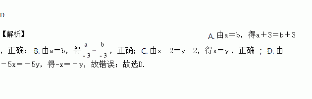 C. 由x—2=y—2,得x=y D. 由-5x=-5y,得x=-y