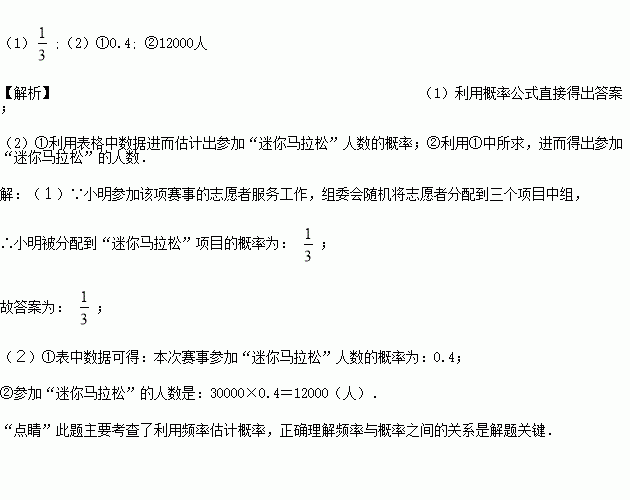 ②若本次参赛选手大约有30000人,请你估计参加“迷你马拉松”的人数是多少?