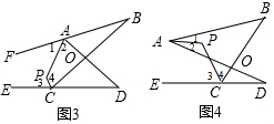解决问题1:如图3,∵AP平分∠BAD的外角∠FAD,CP平分∠BCD的外角∠BCE,