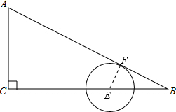 (2)如图所示,当圆心C与点E重合时,圆C与AB相切,切点为点F,连接EF,由切线的性质得到EF垂直于AB,且EF等于圆C的半径,由一对直角相等,且一对公共角相等,根据两对对应角相等的两三角形相似,可得出三角形BEF与三角形ABC相似,由相似得比例,将AC,AB,EF的长代入求出EB的长,再由CB-EB求出CE的长,即为圆心C运动的路程,用路程除以速度,即可求出圆C与AB相切时所用的时间.