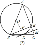 (2)连接OD,与BE交于点F,