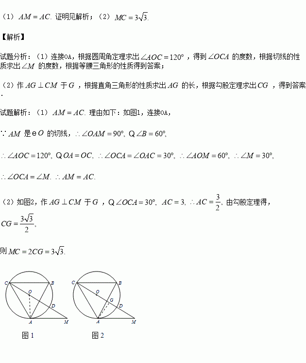 如图,△ABC中,∠B=60°,⊙O是△ABC的外接圆,过点A作⊙O的切线,交CO延长线于点M,CM交⊙O于点D.