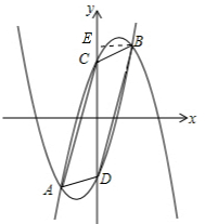(2)∵抛物线l1:y=-x2+2x+3与抛物线l2:y=x2+2x-3相分别与y轴相交于C,D,![]()