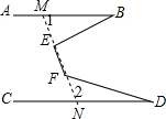 分析 延长EF和FE交AB于M,交CD于N,根据平行线的性质得到∠1+∠2=180°,根据外角的性质得到∠BEF=∠1+∠B,∠EFD=∠2+∠D,即可得到结论.