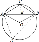 解:如图,连接CO交AB于点E,在圆O上取一点D,连接AD、BD.