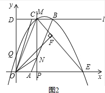 理由:如图2,∵Q(0,m)是线段OD上一动点,