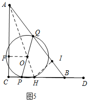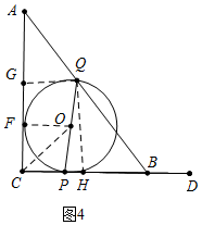 ii)当点O在∠C的角平分线上时,如图4,作QG⊥AC于G,OF⊥AC于F,QH⊥BC于H.![]()