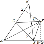 分析 作FZ⊥AE于Z,FY⊥CB于Y,FW⊥AB于W,根据角平分线的性质得到FZ=FY,根据角平分线的判定定理得到∠FCZ=∠FCY,根据题意得到答案.