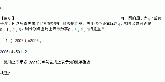 如图所示,圆的周长为4个单位长度.在圆的4等分点处标上0,1,2,3,先让圆周上的0对应的数与数轴的数﹣1所对应的点重合,再让数轴按逆时针方向绕在该圆上.那么数轴上的﹣2007将与圆周上的数字( )重合.