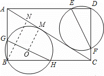 如图,在矩形ABCD中,BC=8,AB=6,经过点B和点D的两个动圆均与AC相切,且与AB、BC、AD、DC分别交于点G、H、E、F,则EF+GH的最小值是 .