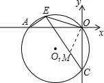 分析:对于直线l,分别令x与y为0求出相应的y与x的值,得到OA=OC,再有OA垂直于OC,得到三角形AOC为圆内接等腰直角三角形,且得到AC为圆的直径,在CE截取CM,使CM=AE,OA=OC,再由同弧所对的圆周角相等得到一对角相等,利用SAS得到三角形AOE与三角形COM全等,由全等三角形的对应角相等得到一对角相等,利用同角的余角相等得到∠EOM为直角,对应边相等得到OE=OM,可得出三角形EOM为等腰直角三角形,利用勾股定理得到EM=
