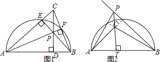 如图AB是半圆的直径,图1中,点C在半圆外;图2中,点C在半圆内,请仅用无刻度的直尺按要求画图.