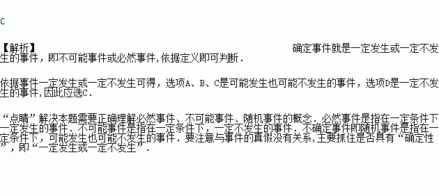 从概率统计的角度解读下列诗词所描述的事件,其中属于确定事件的是 ( )