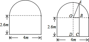 分析 卡车能否通过,关键是车高4米与AC的比较,BC为2.6米,只需求AB,在直角三角形OAB中,半径OA为2米,车宽的一半为DC=OB=1.2米,运用勾股定理求出AB即可.