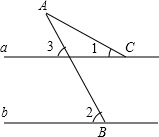 分析:由直线a∥b,根据两直线平行,同位角相等,即可求得∠3的度数,又由三角形外角的性质,求得∠A的度数.