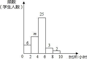 小明对自己所在班级的50名学生平均每周参加课外活动的时间进行了调查,由调查结果绘制了频数分布直方图,根据图中信息回答下列问题: