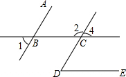 分析:先设∠2的邻补角为∠4,再根据对顶角的定义及邻补角的性质可知∠ABC=∠4=45°,由此可知AB∥CD,再根据∠4=∠D可知BC∥DE.