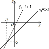 11.如图,已知函数y1=2x-1和y2=x-3的图象交于点P(-2,-5),则根据图象可得不等式y1>y2的解集是x>-2.
