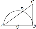 13.如图,AB是半圆O的直径,CB是半圆O的切线,B是切点,AC交半圆O于点D,已知CD=1,AD=4,则tan∠CAB=$\frac{1}{2}$.