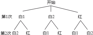 (2)首先根据题意画出树状图,然后由树状图求得所有等可能的结果与两次摸出的球都是白球的情况,再利用概率公式即可求得答案.