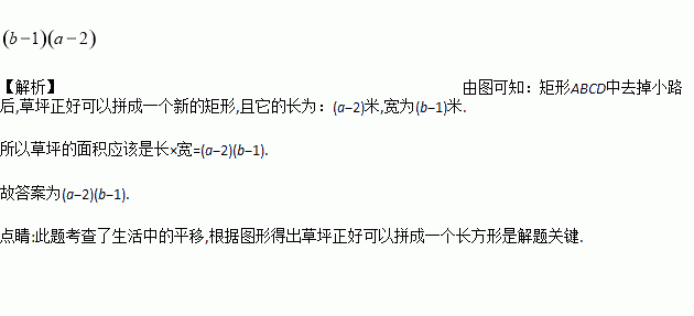 如右图是一块长方形ABCD的场地,长AB=a米,宽AD=b米,从A、B两处入口的小路宽都为1米,两小路汇合处路宽为2米,其余部分种植草坪,则草坪面积为__________