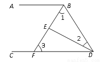 如图,∠ABD和∠BDC的平分线交于E,BE交CD于点F,∠1+∠2=90°.