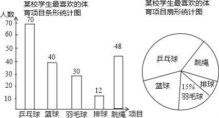 (2)根据总人数减去喜爱乒乓球的人数、篮球的人数、羽毛球的人数、排球的人数,可得答案;