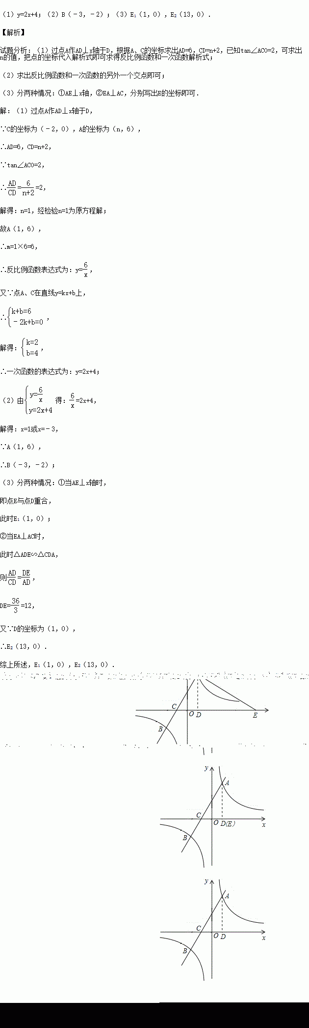(m≠0)的图象交于A、B两点,与x轴交于C点,点A的坐标为(n,6),点C的坐标为(﹣2,0),且tan∠ACO=2.