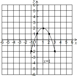 当y=0时,-(x-1)2+2=0,解得x1=1+$\sqrt{2}$,x2=1-$\sqrt{2}$,则抛物线与x轴的交点坐标为(1-$\sqrt{2}$,0)或(1+$\sqrt{2}$,0),