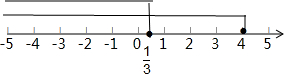 (2)分别解两个不等式得到x≤4和x≤$\frac{1}{3}$,然后根据确定不等式组的解集,再利用数轴表示解集.