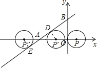 分析 求出函数与x轴、y轴的交点坐标,求出函数与x轴的夹角,计算出当⊙P与AB线切时点P的坐标,判断出P的横坐标的取值范围.