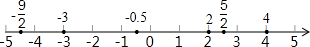 分析:先在数轴上表示出各数,注意在数轴上标数时要用原数,然后写出各数的绝对值.