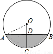 如图为直径是10cm圆柱形油槽,装入油后,油深CD为2cm,那么油面宽度AB= cm.