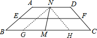 分析 作NG∥AB交BC于G,NH∥CD交BC于H,易得△GNH是直角三角形,即可证明MN=$\frac{1}{2}$GH=$\frac{1}{2}$(BC-AD),根据已知求得AD,根据梯形中位线定理即可求得EF的长