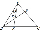 分析 过点F作FG∥BC交AE于G,根据两直线平行,内错角相等可得∠DFG=∠DBE,∠DGF=∠DEB,再根据中点定义可得BD=DF,然后利用“角角边”证明△DBE和△DFG全等,根据全等三角形对应边相等可得EB=GF,然后求出$\frac{AF}{AC}$,再求出△AFG和△ACE相似,根据相似三角形对应边成比例列式求解即可得到$\frac{FG}{CE}$,从而得到BE:EC;