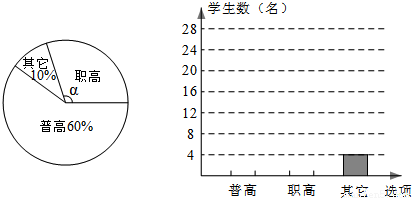 (2)扇形统计图中,“职高”对应的扇形的圆心角α= ;