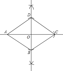 a长为半径作弧,交AC的垂直平分线于B、D两点,连接AB、BC、CD、AD,即可得出所求作的菱形.