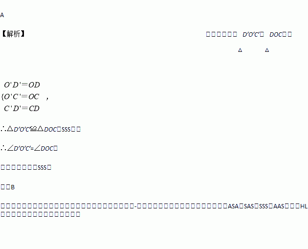 请仔细观察用直尺和圆规作一个角∠A′O′B′等于已知角∠AOB的示意图,要说明∠D′O′C′=∠DOC,需要证明△D′O′C′≌△DOC,则这两个三角形全等的依据是( )